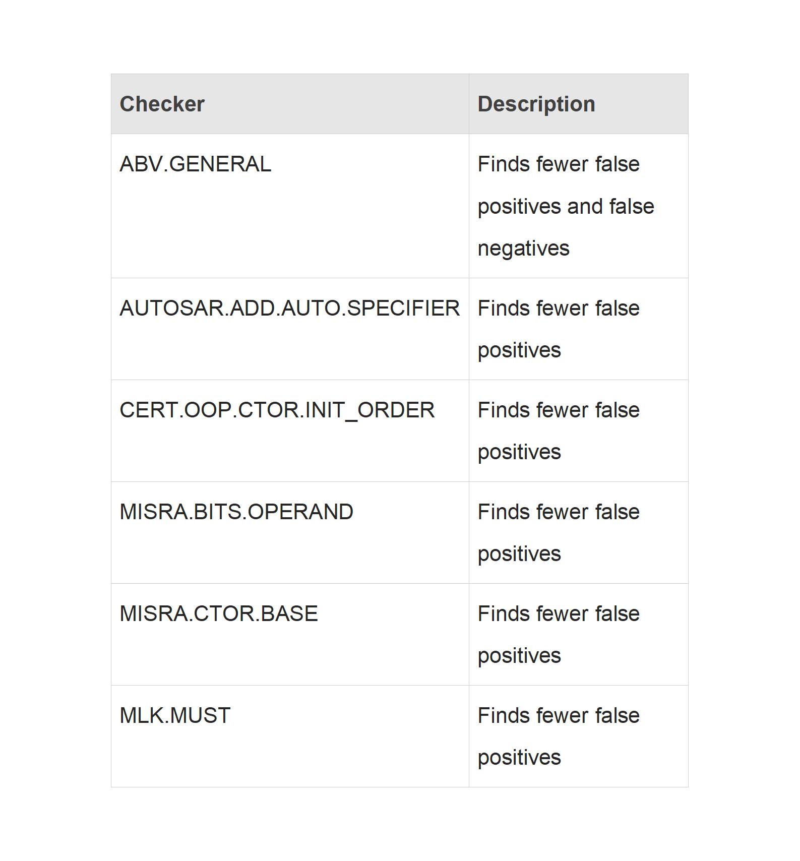 ?替換了現(xiàn)有的社區(qū)MISRA檢查器為Klocwork支持的檢查器。