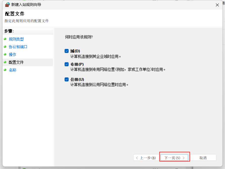 6)、應用規則均選擇,”再點擊"下一頁(N)"
