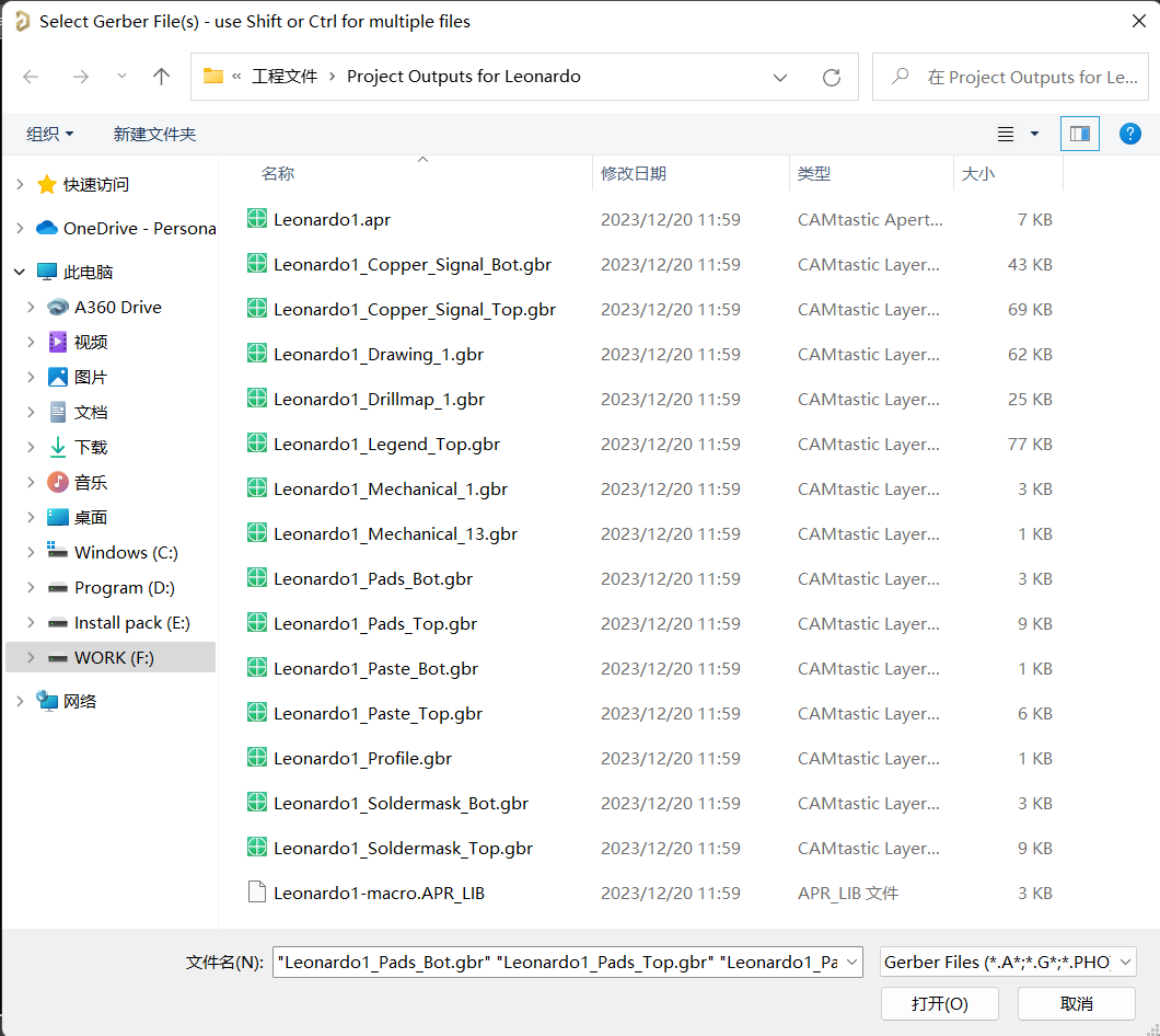 導(dǎo)入 Gerber文件:【文件】→【導(dǎo)入】→【Gerber】將 Gerber 文件導(dǎo)入步驟一新建的 cam 文件中。