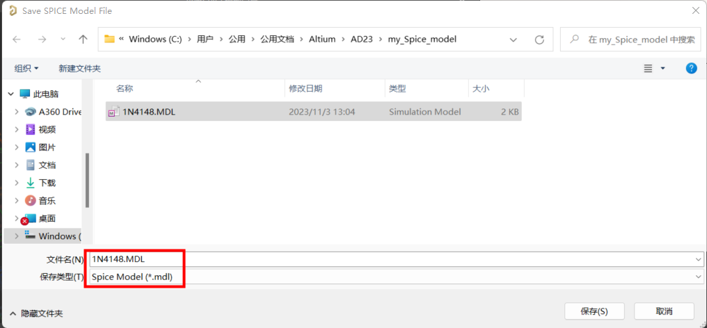 10. 單擊 Finish 按鈕。出現對話框,提示保存SPICE模型,將其保存到 my_SPICE_model 目錄下。