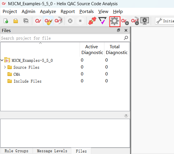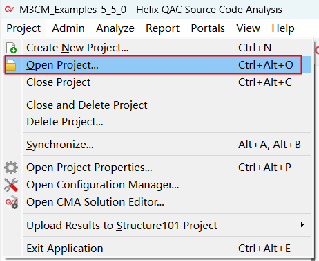 1)、首先進入軟件界面,點擊“Project-Open Project...”,打開 Helix QAC 增購MISRA C2012 的M3CM_Examples工程.