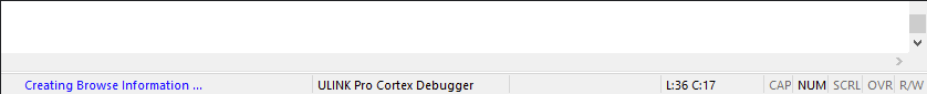 但是,在compiler 6中對于瀏覽信息的生成不再依賴于編譯構建的這一個過程。使用Compiler 6的情況下,Uvision IDE在打開工程的情況下,就會在后臺自動地產生瀏覽信息,在狀態欄中會提示“Creating Browse Information ...”(如圖4),因此使用Compiler 6在構建工程的時候,對于瀏覽信息的生成就不會再占用工程構建的時間。