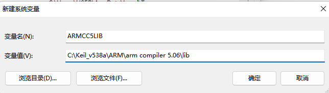 2、找到電腦->屬性->高級->環境變量,查看環境變量中是否有設置“ARMCC5LIB”這個環境變量,確認變量值是否是正確的?是否是MDK安裝目錄下的編譯器目錄下的lib文件夾路徑?(如圖4-2)如:“C:Keil_v538aARMarm compiler 5.06lib”